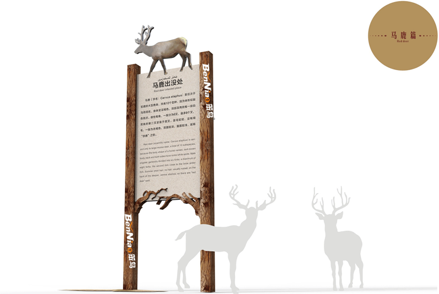 結(jié)合景區(qū)文化特點(diǎn)本次胡楊林景區(qū)標(biāo)識(shí)導(dǎo)視系統(tǒng)概念方案充分融合最具代表性的景區(qū)特色(胡楊林文化沙漠文化),使其標(biāo)識(shí)與景區(qū)環(huán)境融為一體,讓標(biāo)識(shí)真正做到融入環(huán)境,營造和諧。