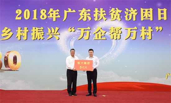 活動(dòng)儀式上,恒大集團(tuán)捐款5億元,用于幫扶河源市連平縣、和平縣發(fā)展油茶、鐵皮石斛、獼猴桃、花卉等特色產(chǎn)業(yè),連片打造現(xiàn)代農(nóng)業(yè)示范園;同時(shí),在產(chǎn)業(yè)幫扶項(xiàng)目周邊,整體規(guī)劃、集中建設(shè)山美水美、有特色、有產(chǎn)業(yè)、能造血的美麗鄉(xiāng)村示范村。截至目前,恒大已累計(jì)為廣東扶貧濟(jì)困日活動(dòng)捐款超20億元。