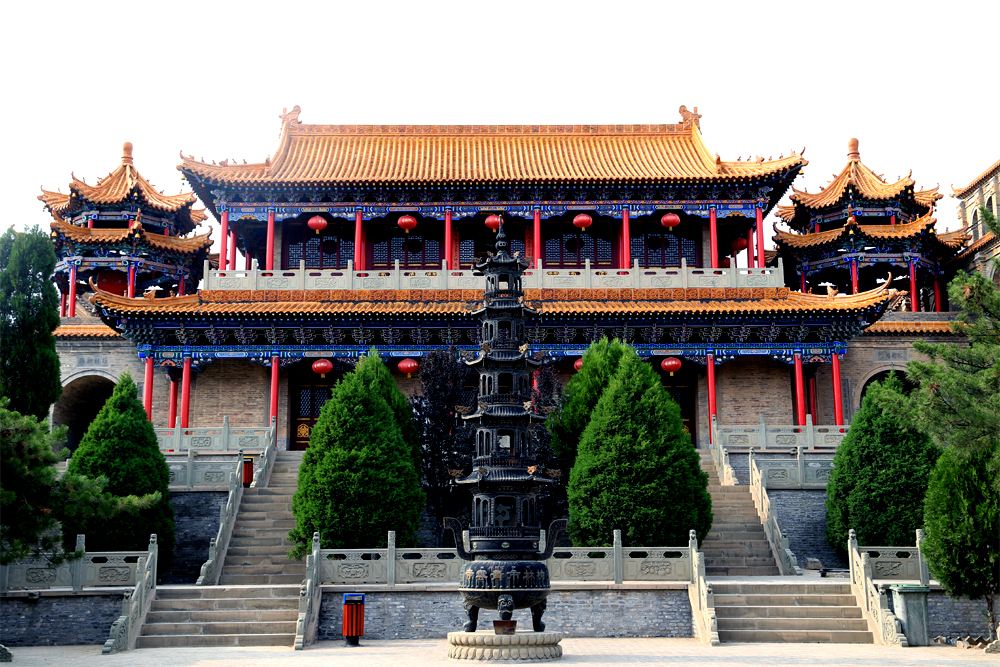 寺始建于明代,三遷而至今址。民國9年(公元1919年)重修擴建,總占地面積40余畝,是陜北最大的仿古建筑群,寺觀建筑布局精巧、獨特,以南北為軸線東西對稱。東為道教建筑,西為佛教建筑。整個寺院建筑呈“東”字形。由南向北,漸次升高,殿宇參差,錯落有致。被譽為“全神廟”。 寺觀有殿堂298間,鐘鼓樓3對,木牌樓3座,戲臺1座,清風樓1座,萬佛塔1座。各院之間回廊環(huán)繞,曲徑通幽。整體建筑風格氣勢磅礴,莊嚴肅穆,建筑工藝精巧絕倫,尤以泥塑、磚雕、木刻為最 。